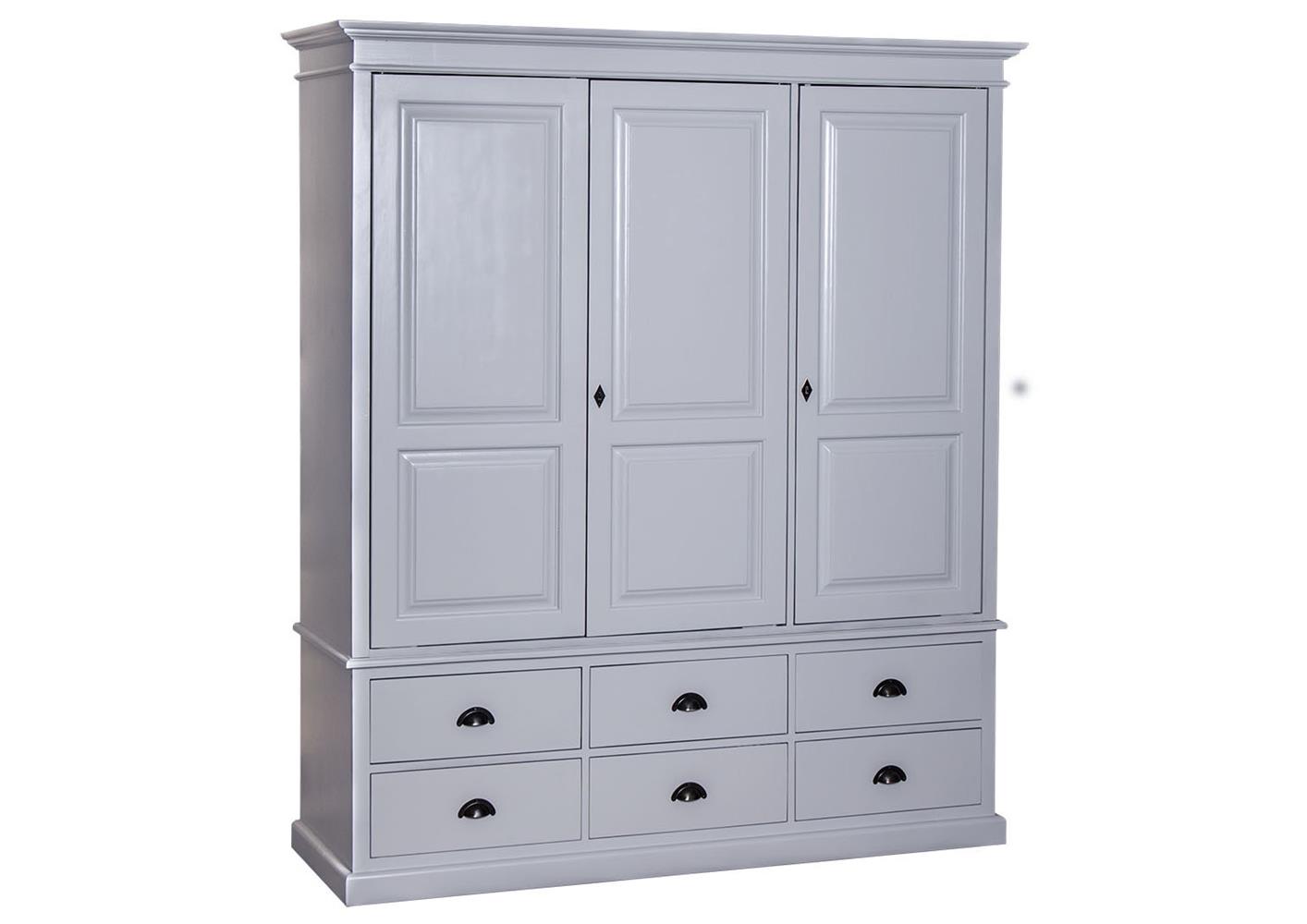 Armoire 3 portes 5 tiroirs en pin massif bicolore