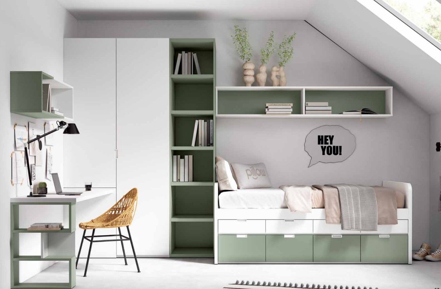 Lit en hauteur avec supports déportés pouvant accueillir des modules de type armoire