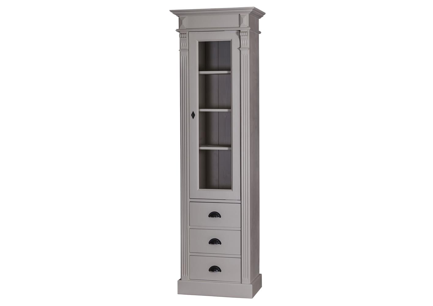 Vitrine en pin massif gris. Style élégant et atypique, elle viendra aménager votre entrée, votre salon , votre salle à manger et même votre bureau avec caractère, originalité et charme. Disponible en chêne et dans plus de 30 coloris avec une finition patinée ou brute.