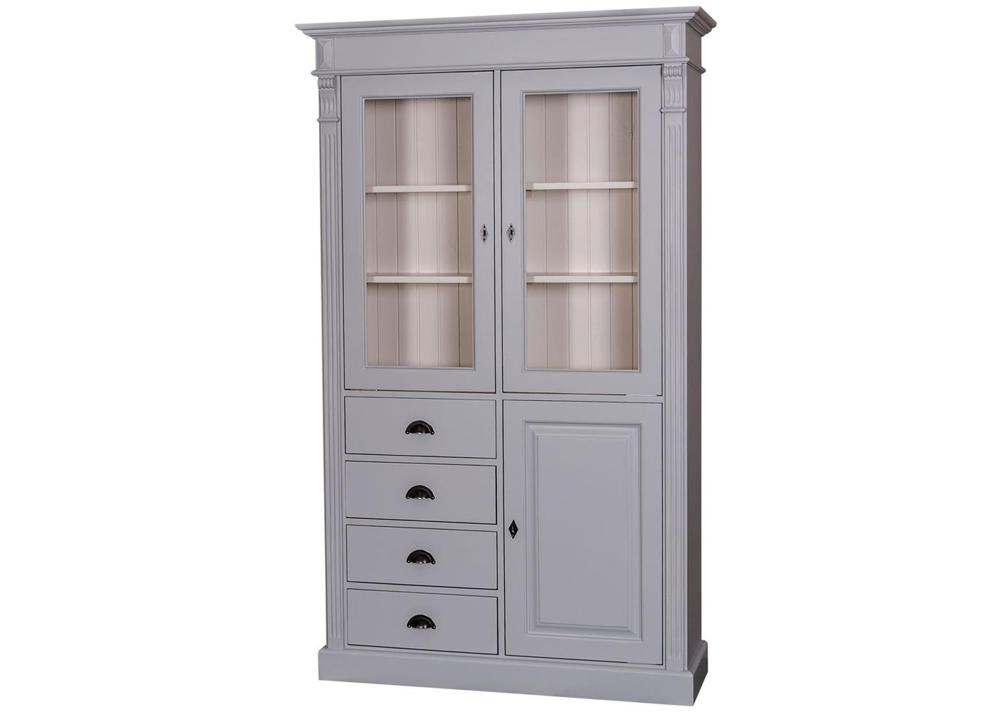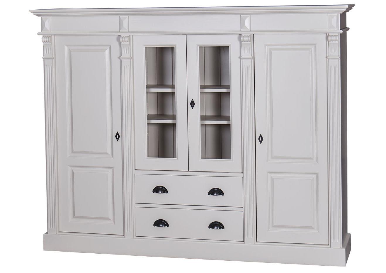 Bibliothèque en pin massif blanche avec portes et tiroirs