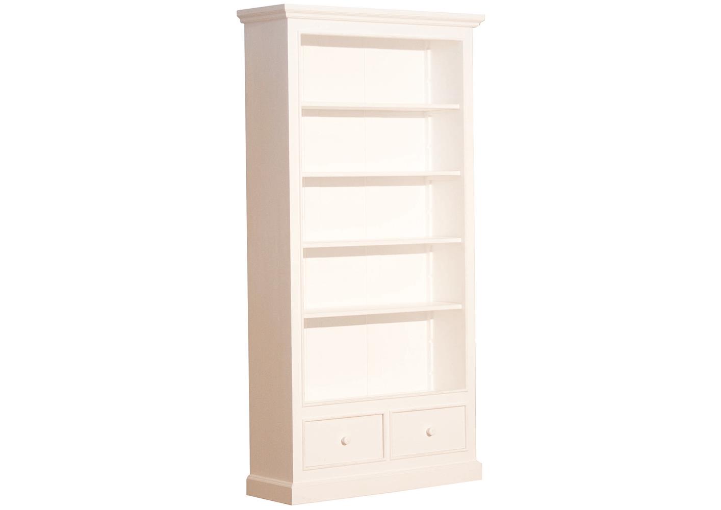 Bibliothèque ouvert 2 tiroirs en pin massif blanc