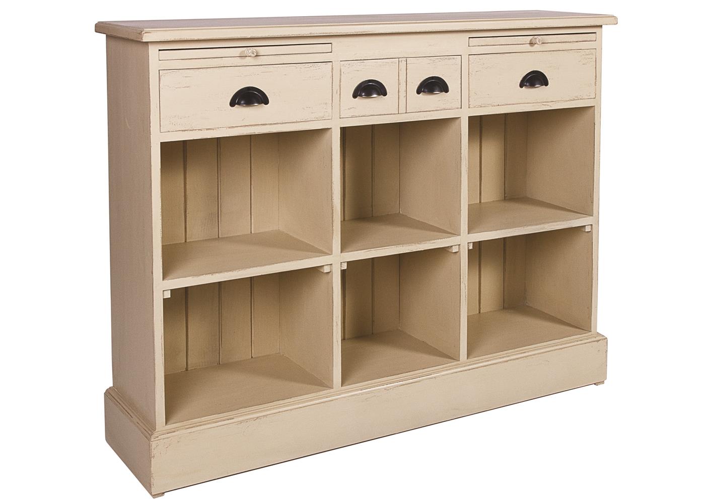 Bibliothèque ouverte en pin massif 4 tiroirs style anglais