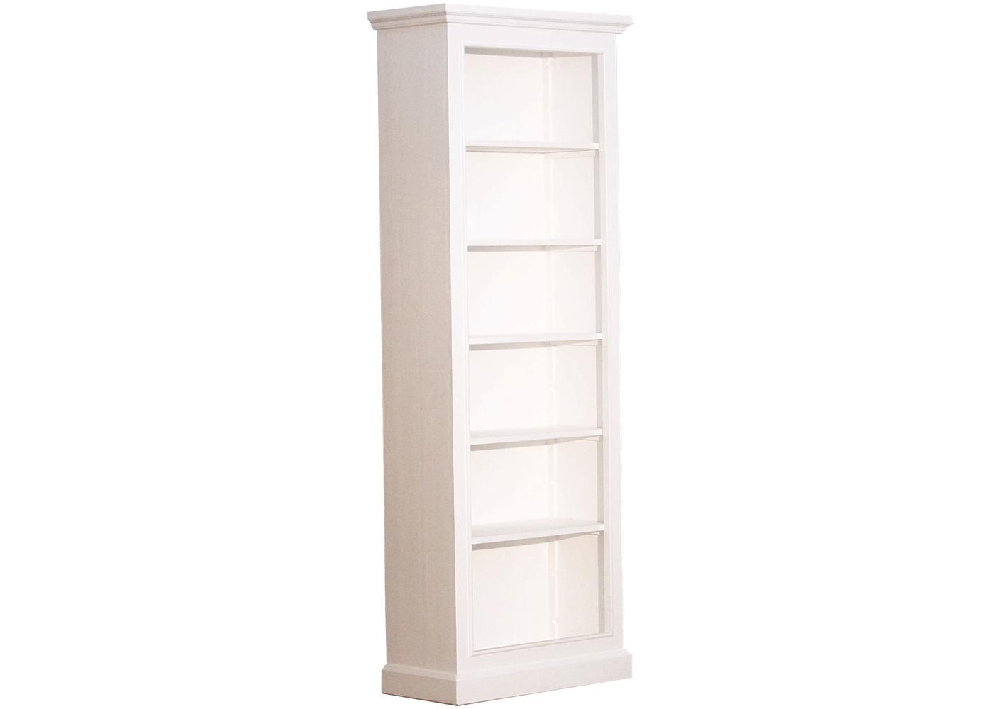 Bibliothèque ouverte en pin massif blanc sur socle