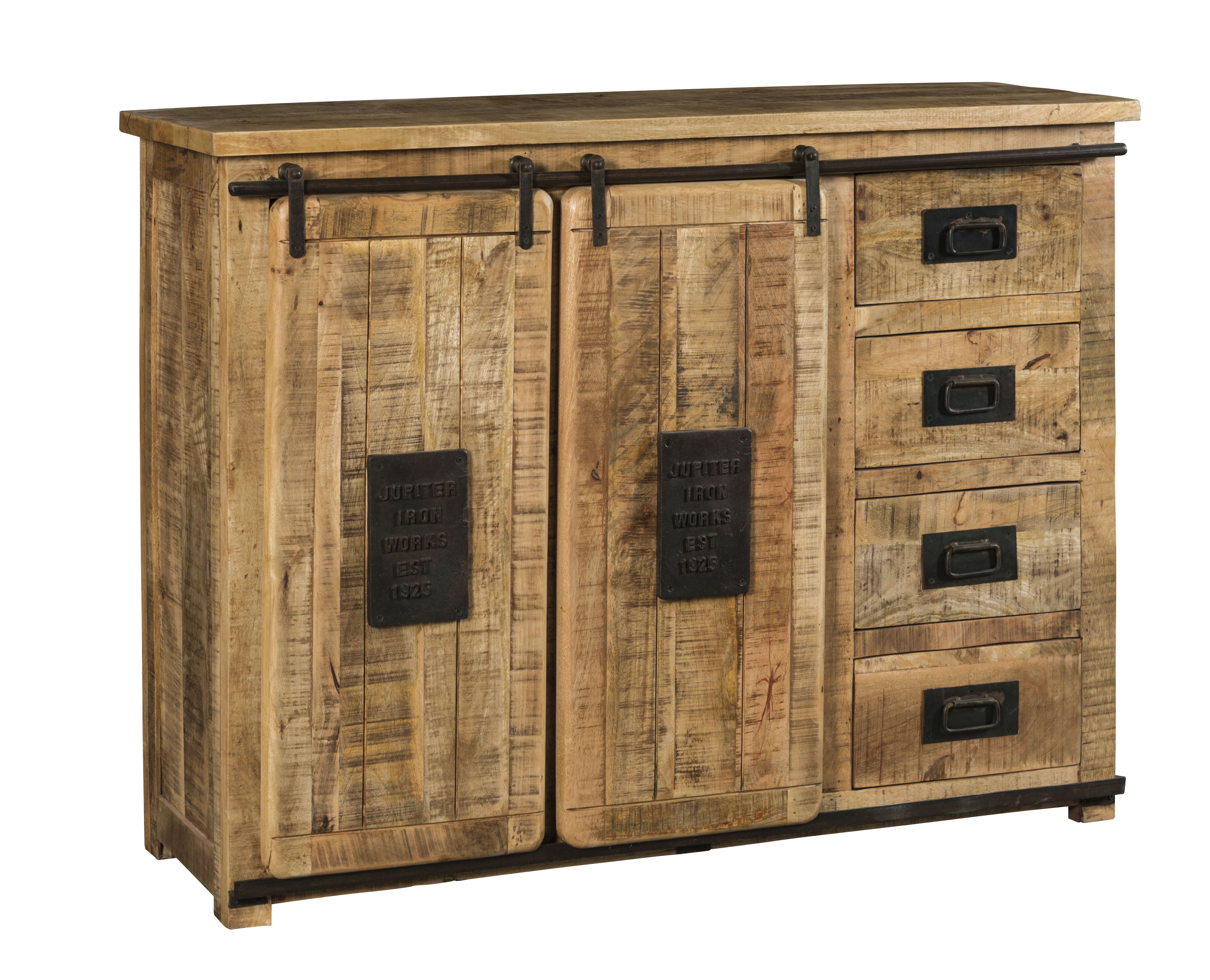 Bahut en manguier massif 2 portes métal - 3 tiroirs