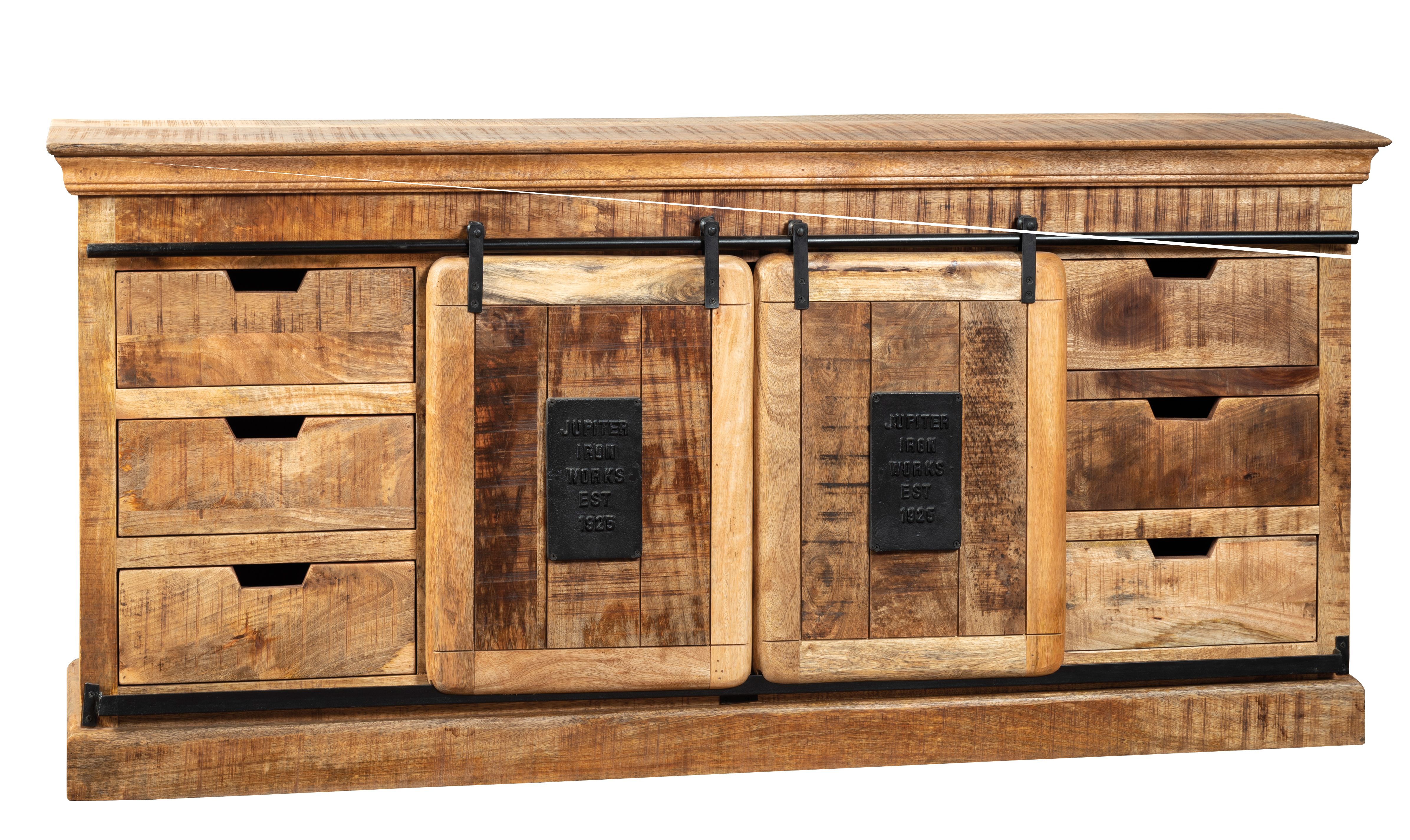 Buffet en bois de manguier 2 portes coulissantes 6 tiroirs