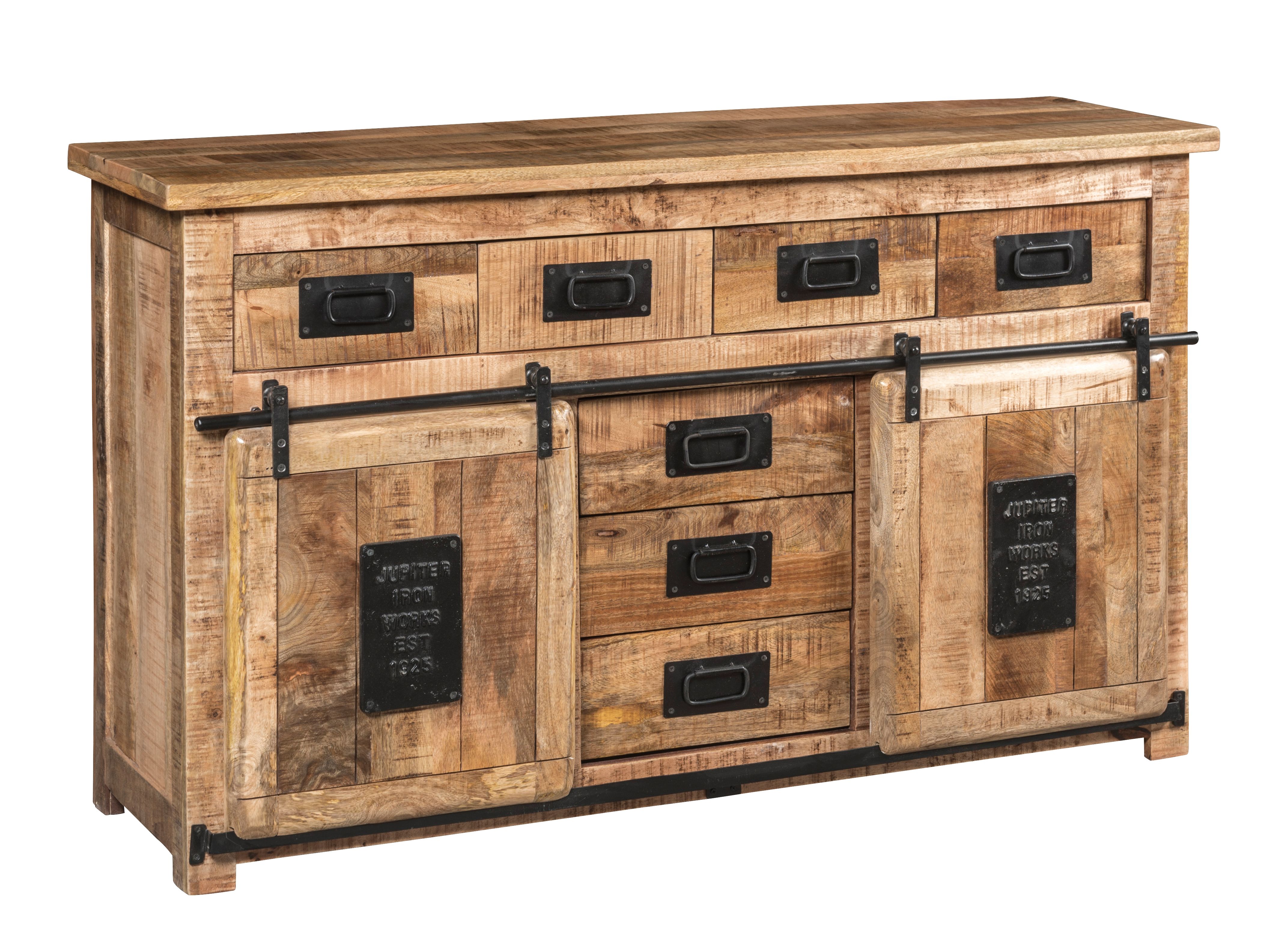 Buffet en bois de manguier et détails en fonte avec portes coulissantes