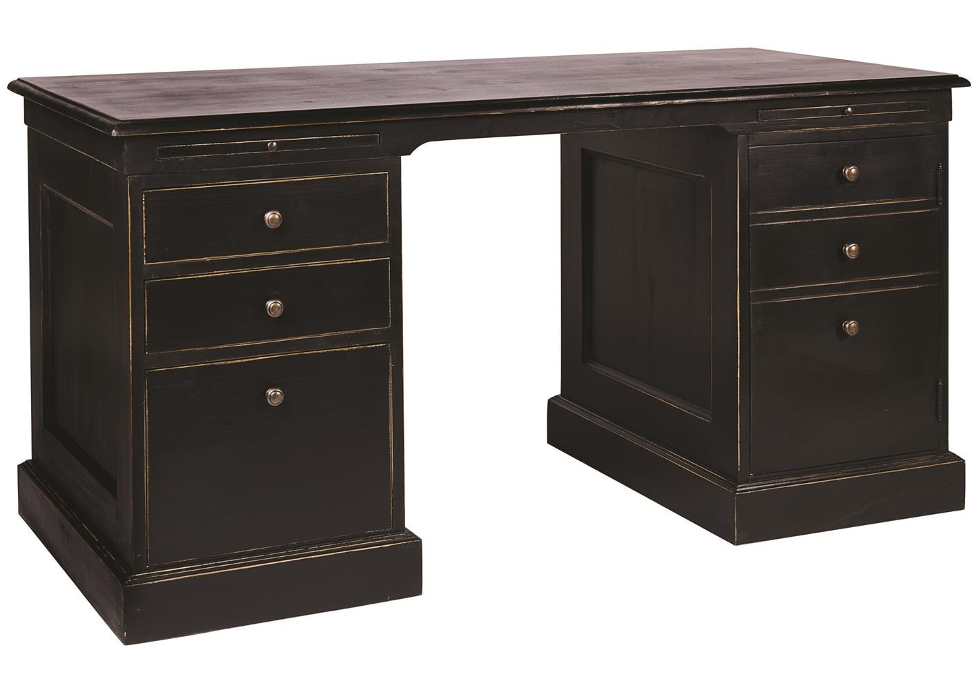 D'inspiration classique son vaste plateau vous permettra de travailer avec aisance. Ses lignes épurées associés à sa teinte noire charbon donne du caractère à ce meuble d'exception. Au centre de votre bureau il aménagera celui-ci avec élégance et chic. Disponible dans plus de 60 finitions.