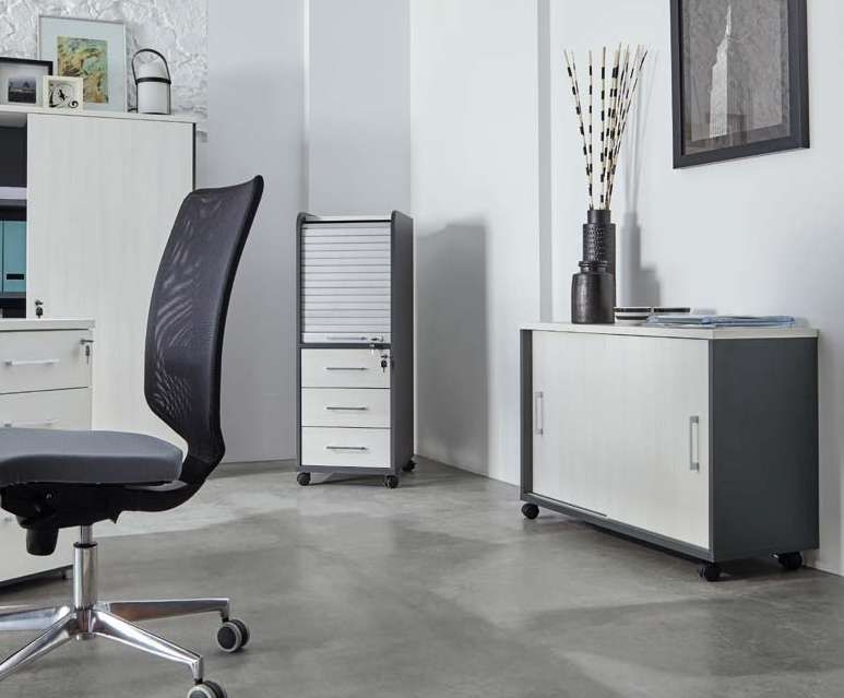 Meuble de bureau sur roulettes 2 portes coulissantes