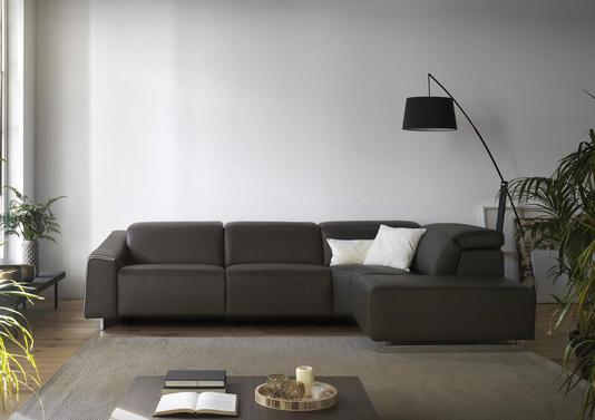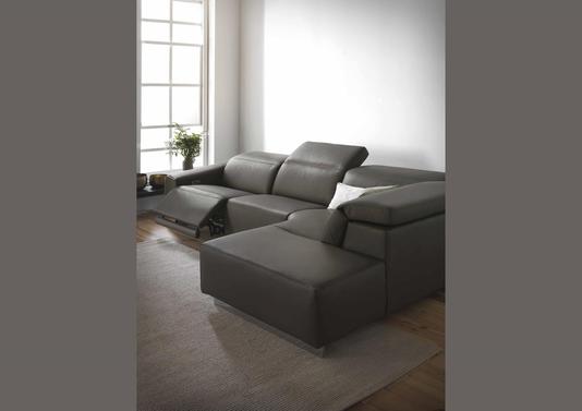 Canapé d'angle modulable composé d'un relax électrique en option. Ses têtières sont réglables. Il comporte une connexion USB. Existe également en tissu, en fauteuil, en canapé 2, 3 et 4 places en fixe ou avec relax électriques.