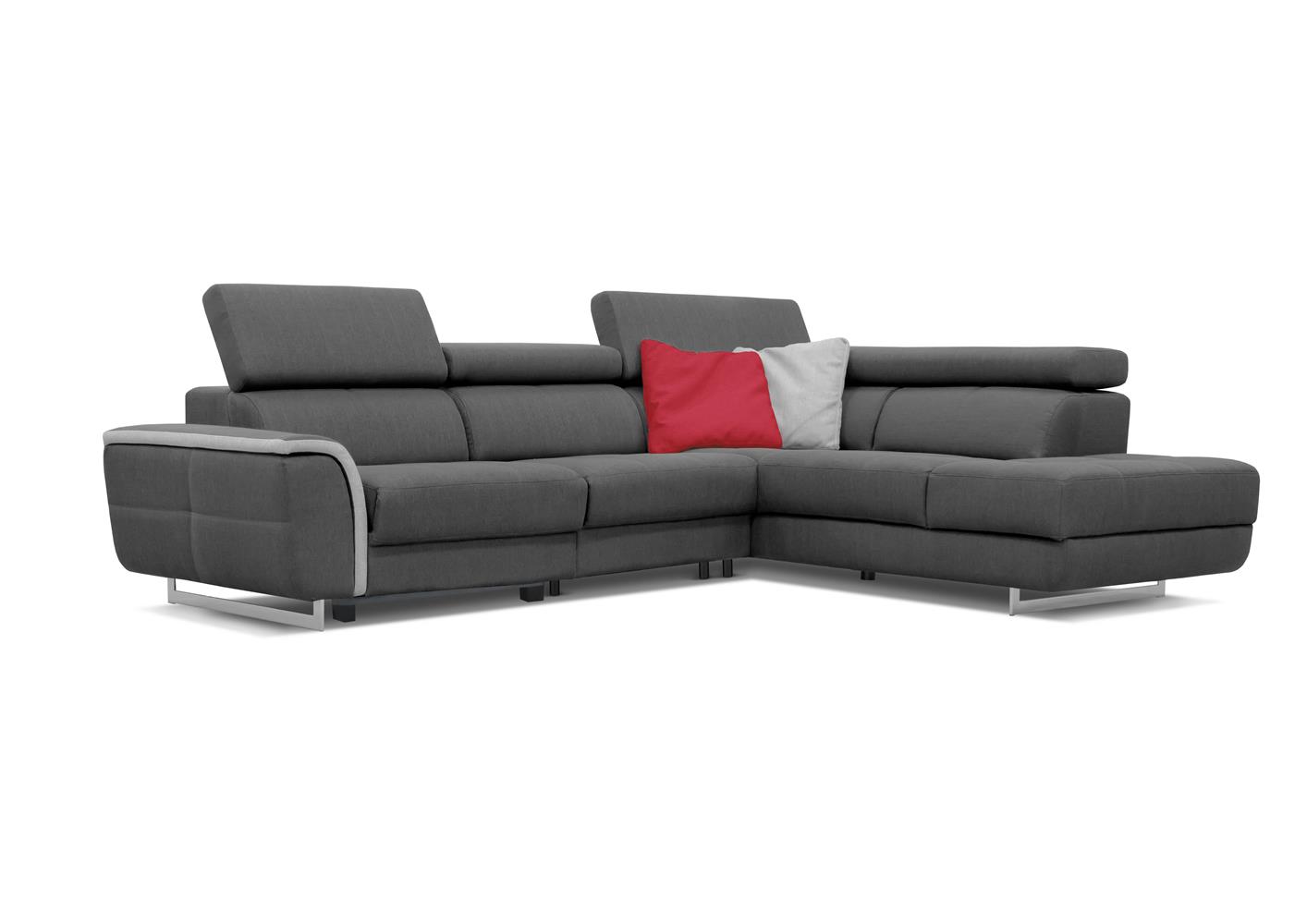 Canapé d'angle contemporain gris anthracite et gris clair. Disponible dans de nombreux coloris et matières pour répondre à vos envies. Existe en fixe ou avec la fonction couchage. Canapé 2 places, 3 places fixe ou relax