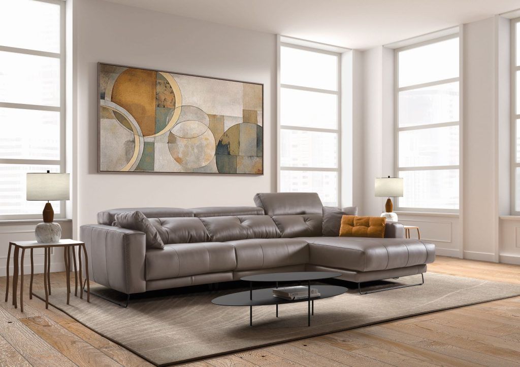 Canapé d'angle en cuir avec méridienne et assises coulissantes
