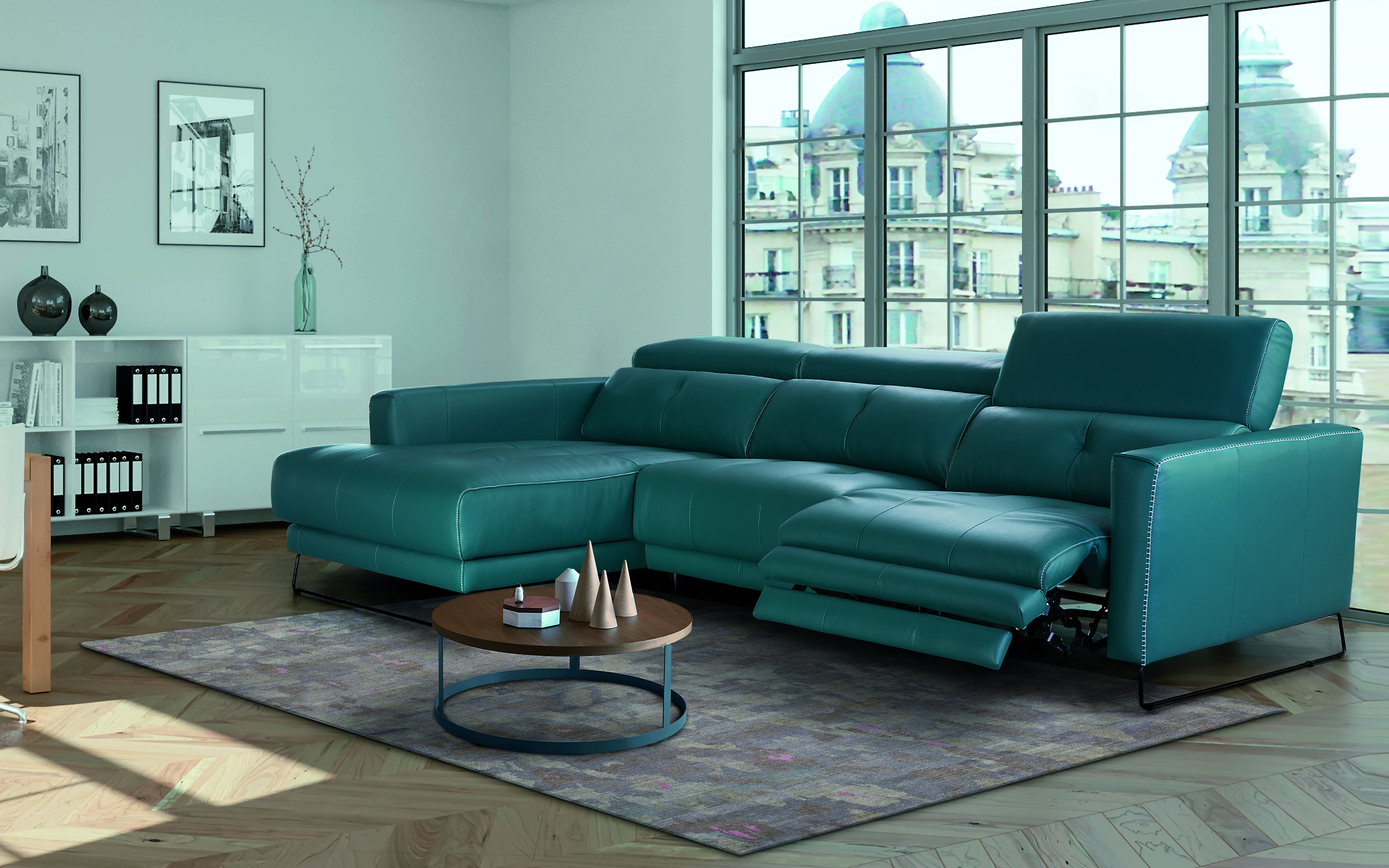 Canapé d'angle méridienne en cuir avec relax électrique