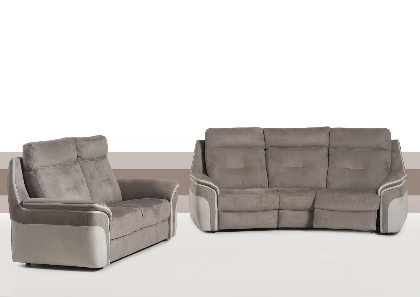 Grand canapé 3 places panoramique avec assises fixes ou relax. Disponible dans de nombreux coloris et finitions il s'adaptera parfaitement à votre pièce.