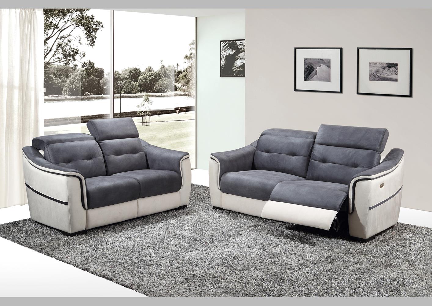 Joli canapé 2 places fixes ou avec relax 2 relax électriques pour vous garantir un confort d'exception. Ses têtières réglables vous permettront d'ajuster votre position lorsque vous utilisez le relax. Découvrez un modèle contemporain bicolor et bi matière pour plus d'originalité. Existe en canapé 3 places 2 relax électriques, en canapé 2 places fixe ou relax et en fauteuil relax électrique.