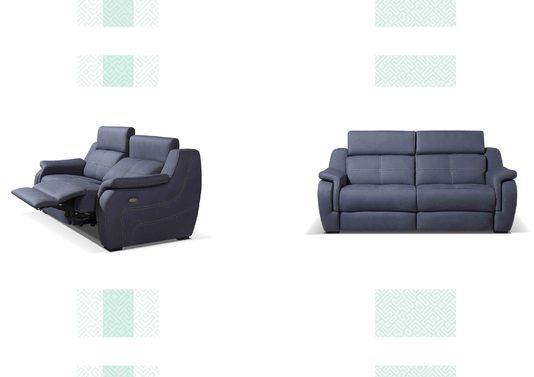 Votre beau canapé 3 places en microfibre bi-ton, 3 assises, haut de dossier, 2 relax électrique + 1 relax manuel.