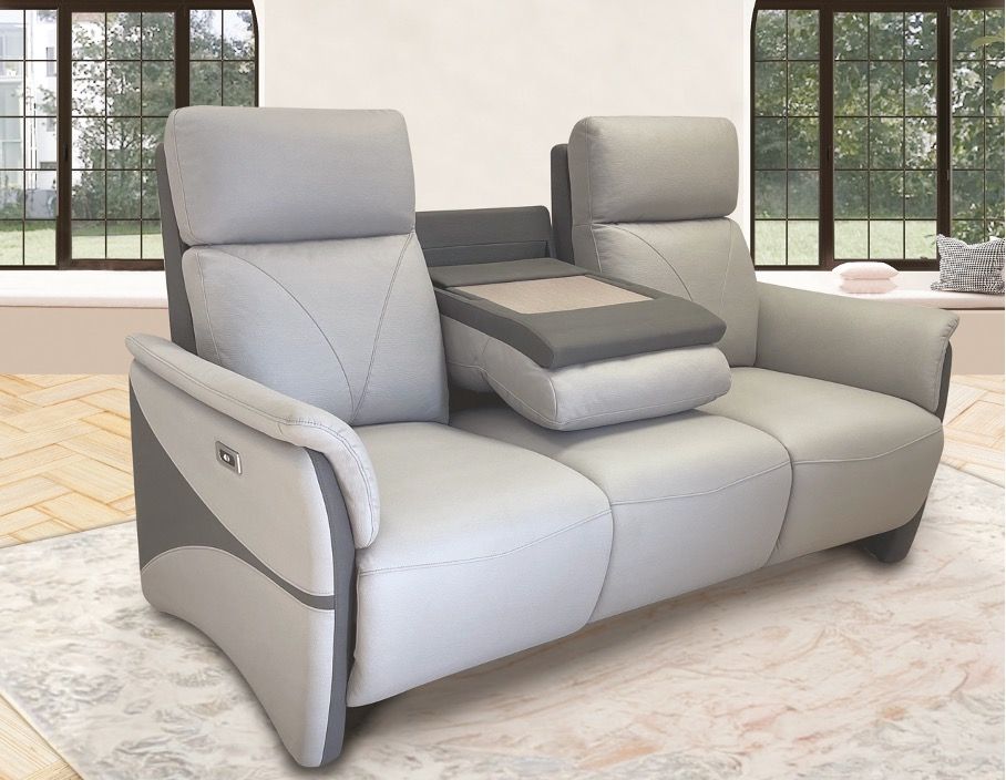 Canapé 3 places 2 relax électriques avec tablette centrale