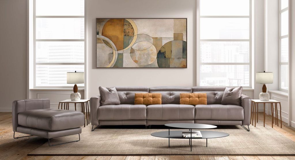 Canapé 3 places en cuir assises coulissantes