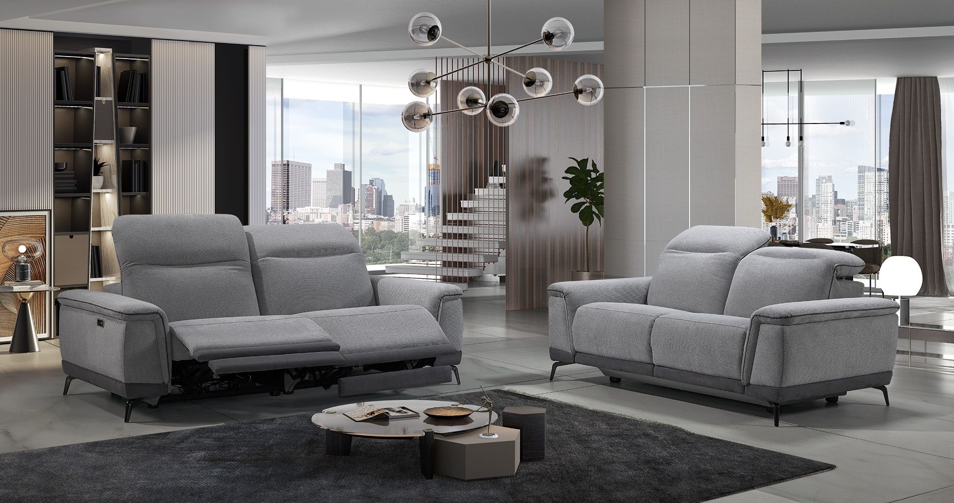 Canapé contemporain 3 places avec possibilité d'option 2 relax électriques