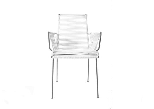 Cette confortable chaise d'extérieur possède une structure en métal inculant des accoudoirs tressés. Elle est tressée en lin, cuir ou PVC haute résistance à mémoire de forme traité contre les UV. Fabriquée en France, cette chaise est 100% recyclable.