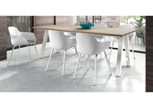 Autour de votre table apportez une touche d'originalité avec ce fauteuil coque sur piètement métal. Sa forme contemporaine est enveloppante et pourra être rendue plus confortable en ajoutant en option une galette de feutrine. Son argument pour vous convaincre, le revêtement se nettoie d'un coup d'éponge !