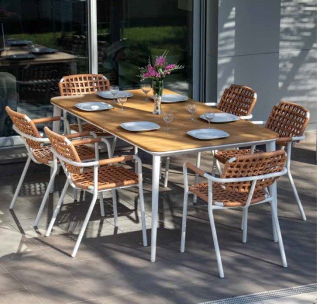 Les beaux jours reviennent et vous souhaitez transformer votre terrasse, votre balcon ou votre jardin en un espace repas quotidien pour votre famille et vos amis. Installez autour de votre table en teck ces jolies chaises d’extérieures en corde tressée super confortables. Disponible en deux coloris : vert ou terracota, cette chaise avec accoudoirs s’accordera avec la plupart des tendances extérieures de style vintage, bohème ou minimaliste. Vous les apprécierez aussi pour leur côté empilable très pratique.