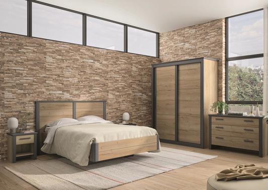 Lit mélaminé de chêne et laque sur pied
