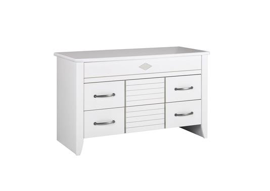 Elément complémentaire dans votre chambre cette commode vous offrira le rangement nécessaire pour vos accessoires, vos sous vêtements,… Cette très belle commode 3 tiroirs vous est proposée en merisier ou en blanc de qualité française. Disposer au dessus une petite décoration que vous aurez trouvé lors d'une escapade à Salin Les Bains, qui lui procurera un atout charme supplémentaire.