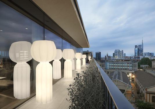 Cette grande lampe possède une structure entièrement illuminée d'une lumière douce. En forme de quille, elle apporte originalité et modernité à votre extérieur.
