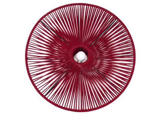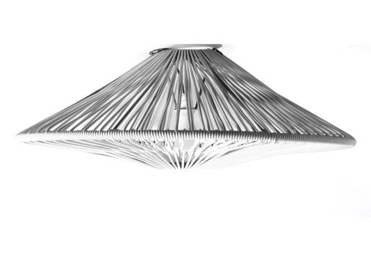Ce plafonnier tendance est structuré en acier peint. En forme de soucoupe, son tressage peut être en lin, cuir ou PVC haute résistance à mémoire de forme traité contre les UV de 19 coloris différents. Fabriqué en France, ce plafonnier est 100% recyclable.