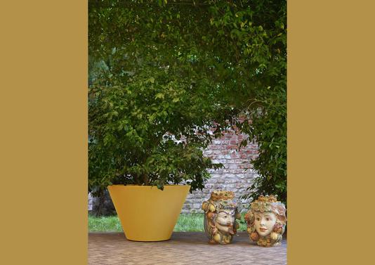 Ce large pot conique de faible hauteur possède une grande capacité pour accueillir de grandes plantes ou haies. Léger, il se transporte facilement selon les saisons. Son option lumineuse lui apporte une utilité supplémentaire. Existe en de nombreuses couleurs.