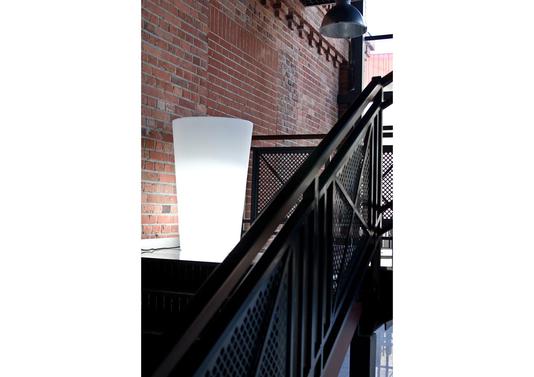 Ce grand pot conique possède une grande capacité pour accueillir de larges plantes ou haies. Léger, il se transporte facilement selon les saisons. Son option lumineuse lui apporte une utilité supplémentaire. Existe en de nombreuses couleurs et tailles.