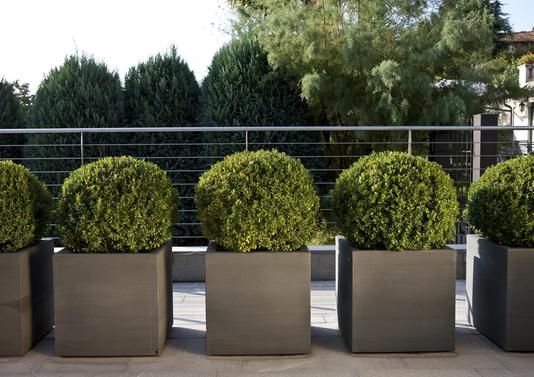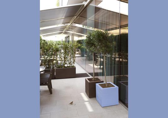 Ce pot en cube possède une grande capacité de reception de volume lui permettant d'accueillir des arbustes ou de petits arbres. Son choix de couleurs l'intégrera avec goût à votre décoration.