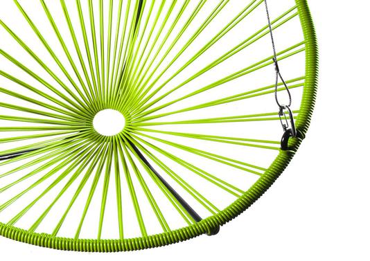 Ce fauteuil suspendu d'extérieur, appelé également balancelle, possède une strucutre en métal et un tressage en PVC haute résistance à mémoire de forme traité contre les UV. Fabriqué en France, cette balancelle est 100% recyclable.