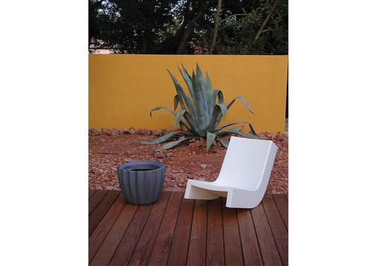 Ce siège bas possède une structure simple en forme de C garantissant sa légèreté et sa solidité. Incurvée aussi sous l'assise qui est en contact avec le sol, un léger mouvement de bascule peut alors se faire.