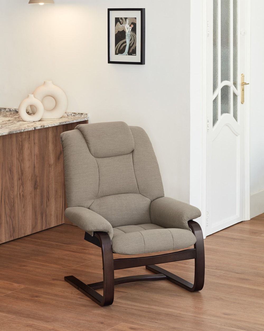 Fauteuil cosy basculant avec pied bois