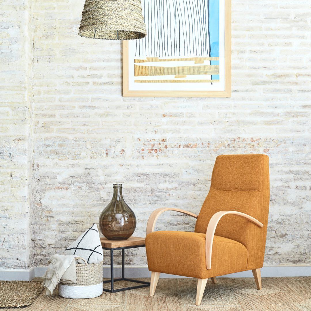 Fauteuil d'appoint haut de dossier avec accoudoirs bois