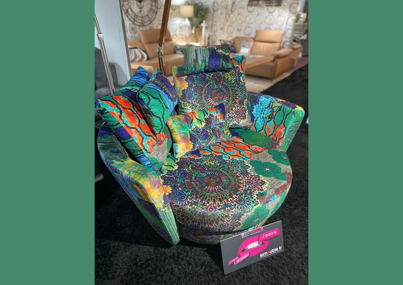 Voici un superbe fauteuil au tissu très original qui apportera une touche dynamique dans votre salon ! Ce toi & moi aux grandes dimensions et aux formes tout en rondeur vous donne envie de vous nicher dans son assise confortable pour un moment de détente devant un film ou pour une pause lecture après une journée shopping à Dijon. Son détail qui fait toute la différence : son piètement pivotant pour pouvoir l’orienter et profiter de la vue sur le vignoble de Nuits-Saint-Georges ! Vous pourrez personnaliser son assise, sa structure et ses coussins, en ayant l’embarras du choix entre les matières tissu ou cuir, une infinité de couleurs, une multitude de tissus à motifs et de revêtement au design exclusif !