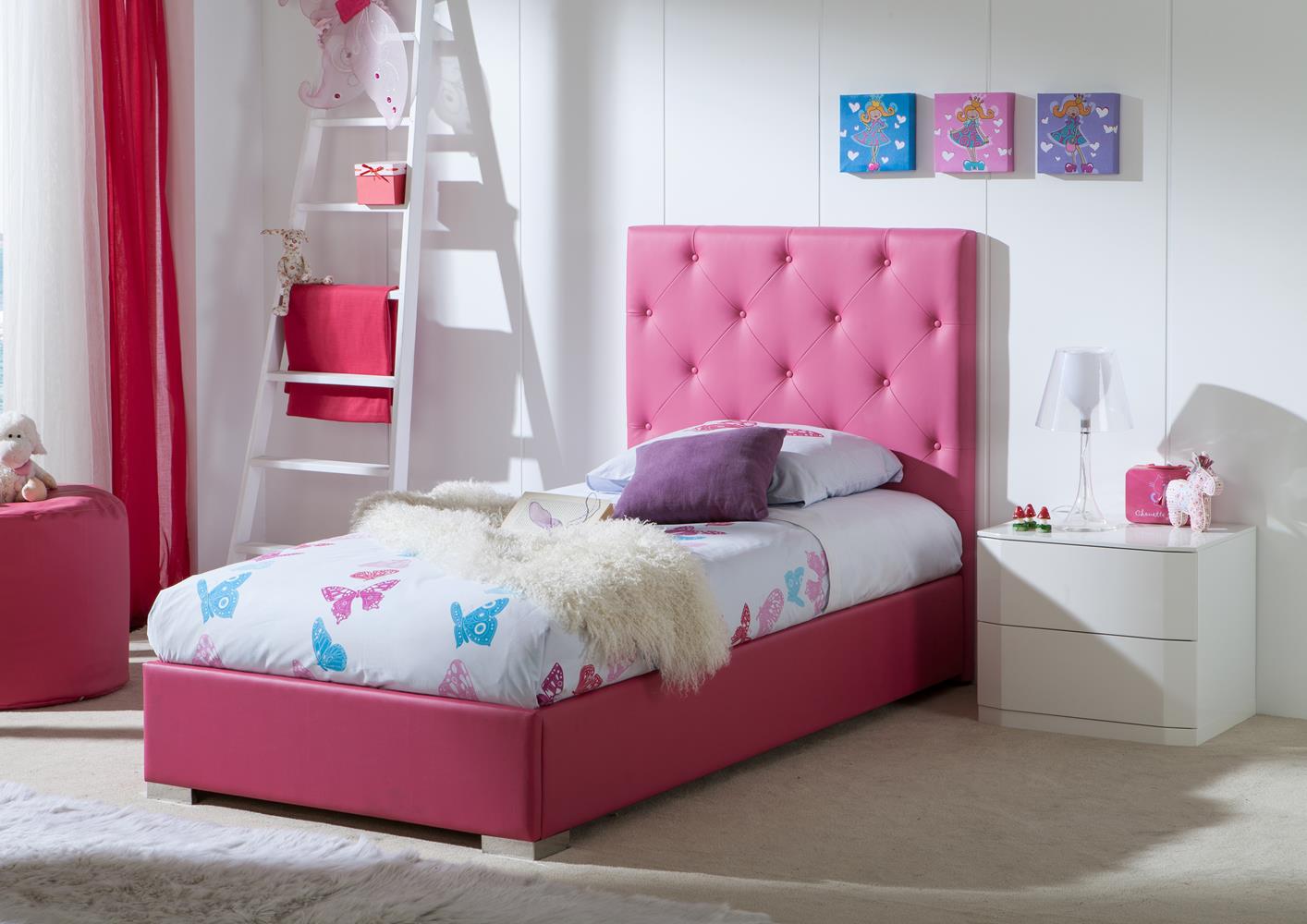 Lit contemporain fuscia capitonnée avec coffre