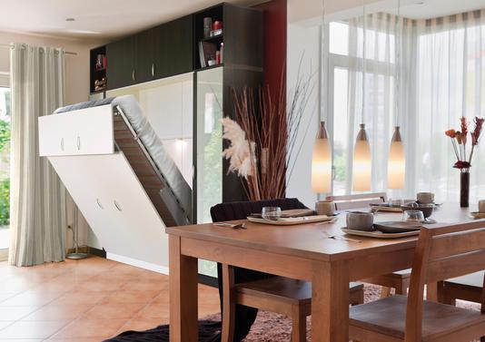 Aménagez votre intérieur de façon optimisée, par exemple votre appartement à Besançon avec vue sur le Doubs, ou une chambre d'amis à Volnay avec vue sur les vignes, c'est ce que propose toute cette collection. Cet élégant meuble cache en réalité un lit relevable à la verticale. Il peut accueillir un matelas en 160 x 200 (qui est en option). Personnalisez le grâce à son choix varié de coloris et de finition de façade laqué, alu ou encore verre ou miroir. Il dispose également d'un éclairage Led intégré, de 2 étagères et d'un range oreillers. Venez à notre rencontre à Pierre de Bresse, notre équipe prendra le temps de construire votre projet. Vous pouvez également accompagner ce lit de rangements, bureau, cette collection est pleine de surprises, et cerise sur le gâteau en fabrication française.