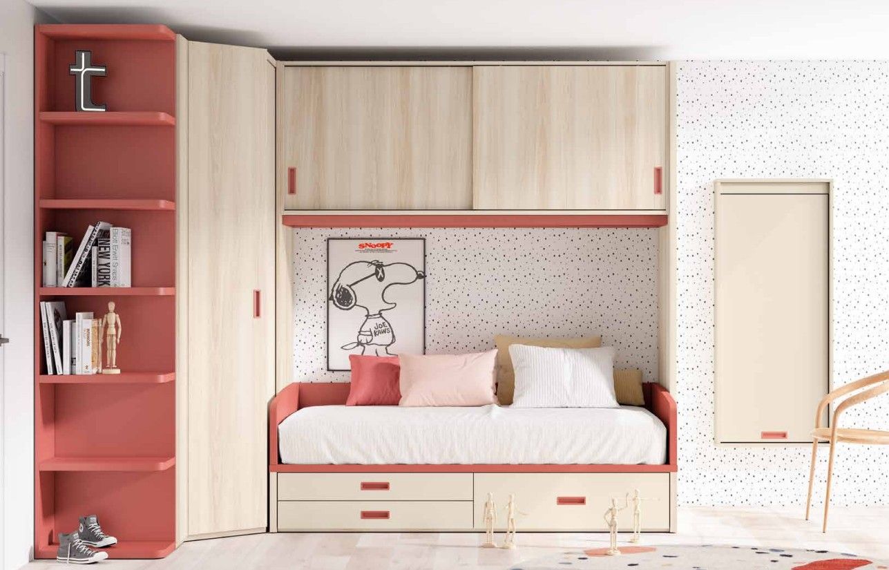 Composition lit pont avec armoire d'angle