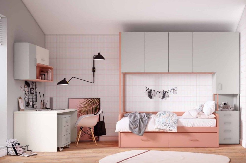 Ensemble lit à tiroirs couchage 90 x 190 cm avec espace bureau à personnaliser