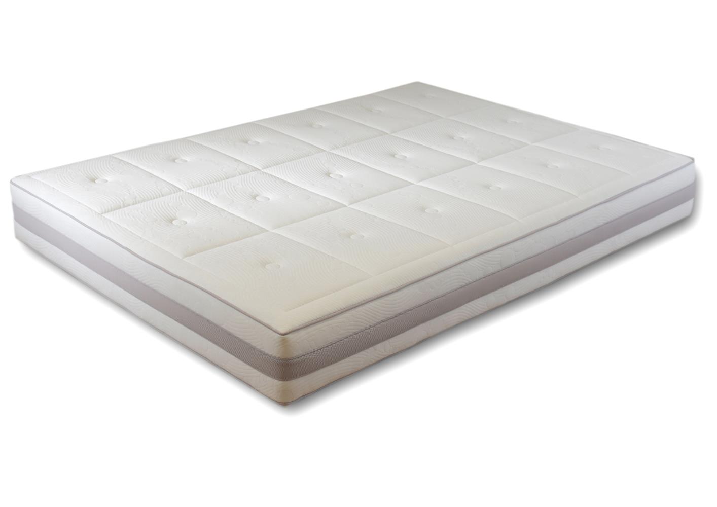 Matelas 1025 ressorts ensachés. Face dorùeur mousse viscoélastique HD50kg/m3. Face dessous mousse polyuréthane HD24Kg/m3. Garnissage ouate polyester et jersey. Coutil stretch 100 % polyester.