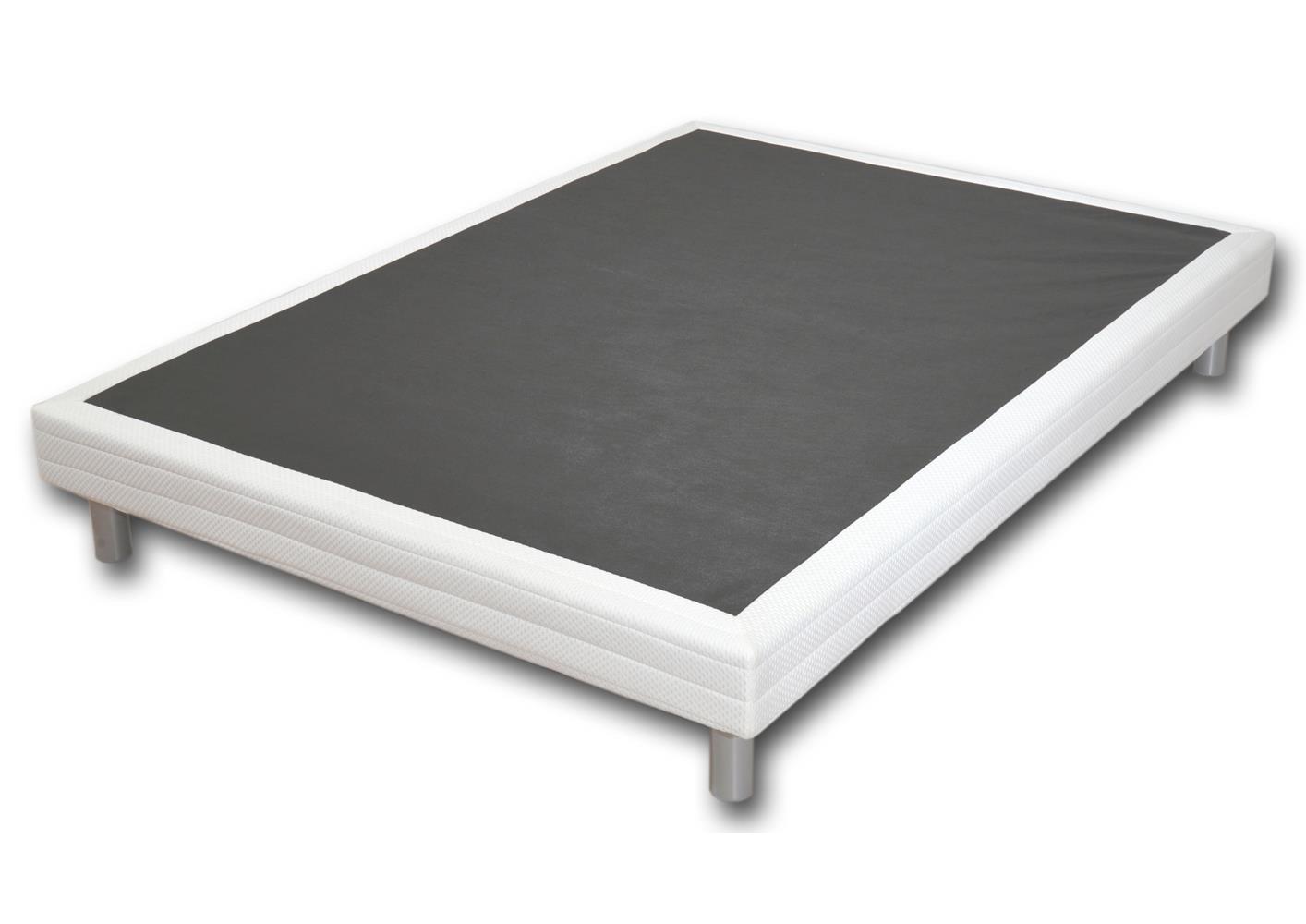 Encadrement bois massif à structure renforcée. Suspension à lattes rigides - 10 lattes. Isolation par feutre thermolié. Coutil piqué sur mousse contact. Surface d'accueil en feutrine anti glissement. Toile de fond anti poussière. Pieds en option 4 au choix.