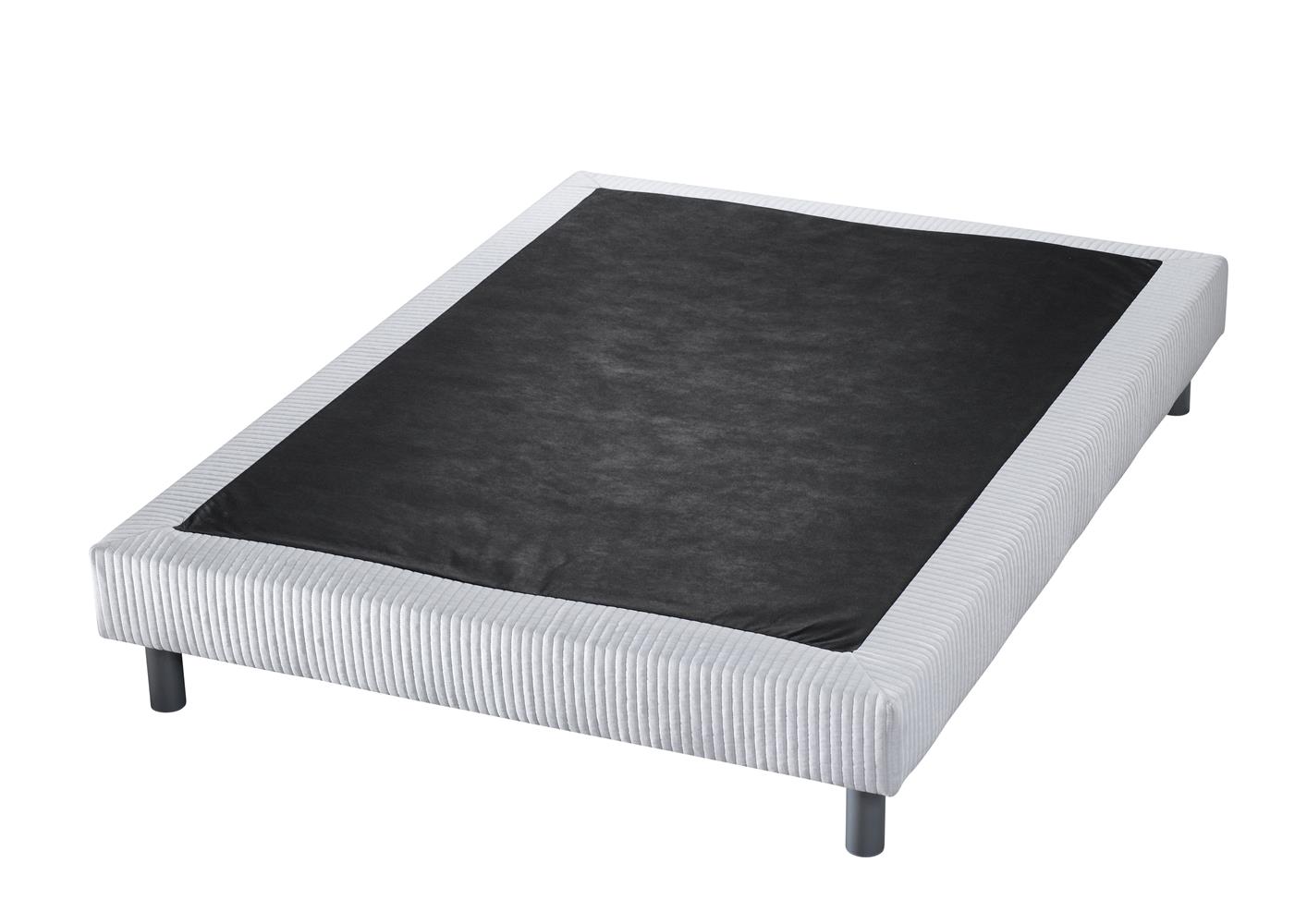 Sommier tapissier encadrement bois massif à sturcture renforcée. Suspension 17 lattes souples montées sur embout. Surface d'accueil en feutrine anti glissement. Fintion coutil façon déco écru. Toile de fond anti poussière. Pieds en option.