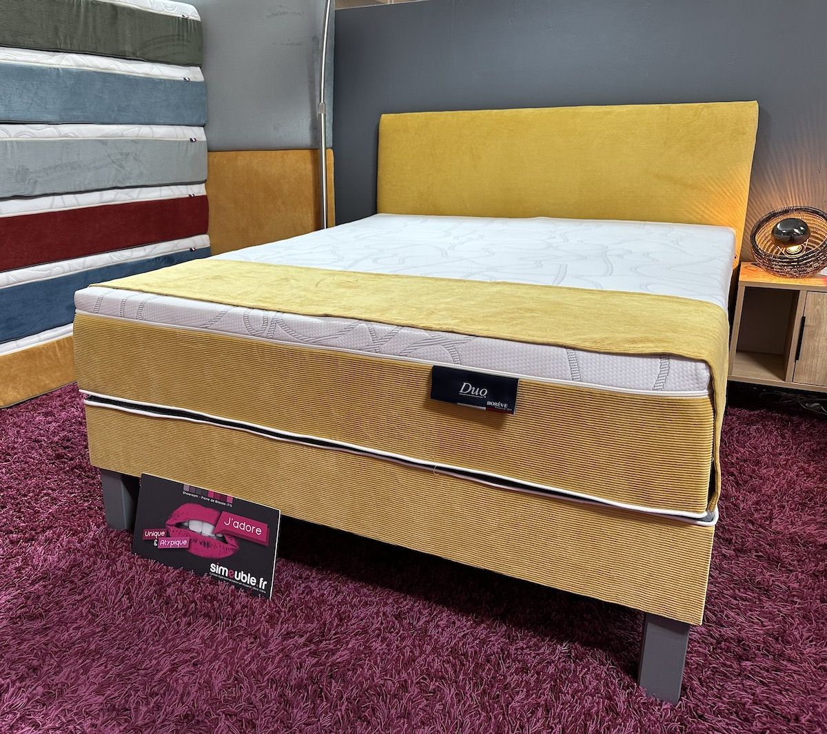 Pour bien dormir le choix du sommier est aussi important que celui du matelas ! Ce sommier tapissier 13 lattes fabriqué en France, offre un soutient parfait au matelas, ce qui contribue à une meilleure posture. Il permet aussi une bonne aération du matelas et une absorption optimale de l’humidité. Son cadre est disponible dans plusieurs couleurs de tissu (en supplément) : jaune, bleu, rouge, kaki, gris … vous pourrez l’accorder facilement à votre matelas, votre tête de lit et à la décoration de votre chambre. Notre magasin spécialisé en literie se trouve à la limite des départements du Jura et de la Côte d’Or, à Pierre de Bresse en Saône-et-Loire. Depuis Dijon il vous faudra 1h, depuis Lons-le-Saunier 40min.