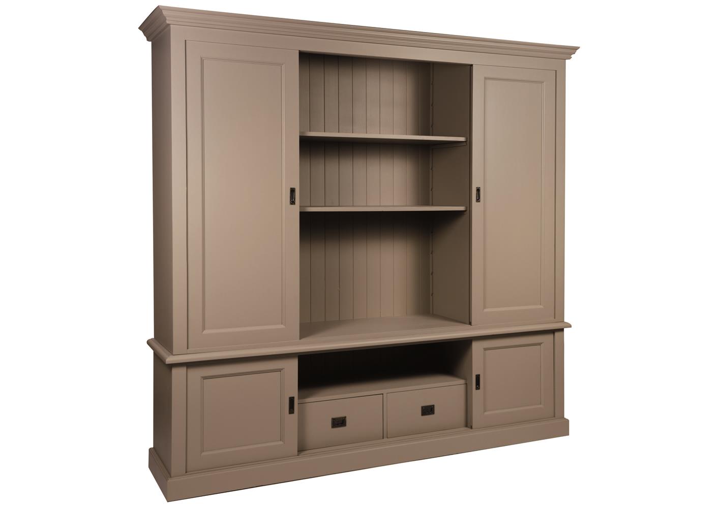 Beau meuble télé en pin massif avec portes coulissantes qui vous permettront de dissimuler votre télévision. Découvrez un meuble aux nombreux rangements. Disponible dans plus de 60 finitions.