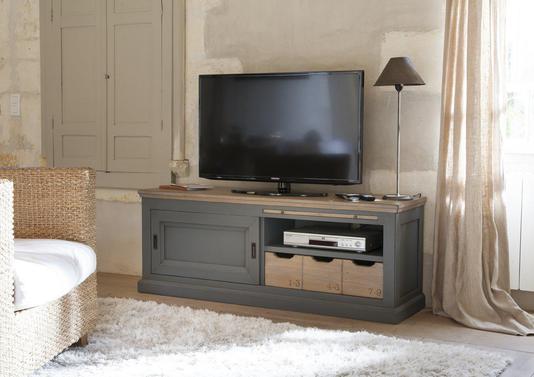 Meuble TV au charme campagnard 1 porte coulissante et 1 tiroir