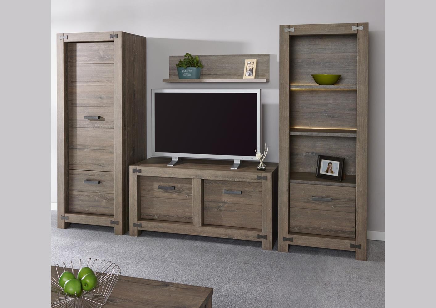 Meuble TV 2 portes 1 niche centrale dans l'esprit industriel