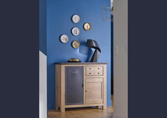 Meuble d'entrée 1 porte métal, 1 porte bois, 1 tiroir