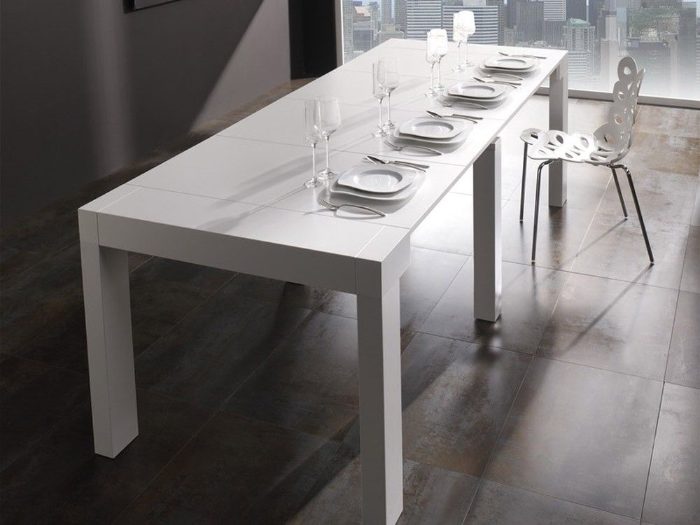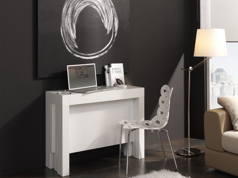 Console contemporaine transformable en table grâce à 4 allonges